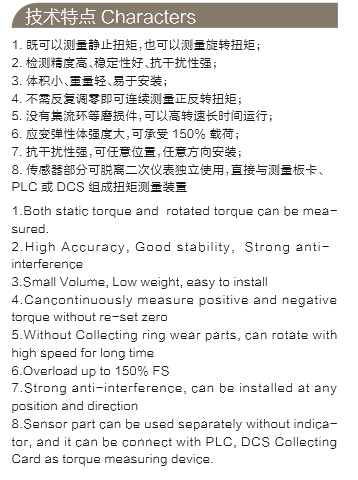 檢測電動機、內(nèi)燃機等旋轉(zhuǎn)動力設備,輸出扭矩及功率;檢測各種機械加工中心、自動機床的工作過程中的扭矩;檢測各種旋轉(zhuǎn)動力設備系統(tǒng)所傳遞的扭矩及效率;可用于制造粘度計、電動、氣動、液力扭力扳手。